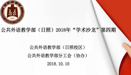 10月10日下午,江南在线平台(中国)官网(日照校区)2018年第四期“学术沙龙”在JC1002会议室举行。本期沙龙邀请了公丕民、门超元、牟晓等三位老师分别作了题为“基于需求分析的大学英语教学定位”、“中外英语学习者学术论文写作结论部分的身份构建对比研究”、“‘一带一路’战略下中国传统文化在大学英语教学中的融入”的学术报告。本期活动由副教授张英主持,全体教师参加了研讨。