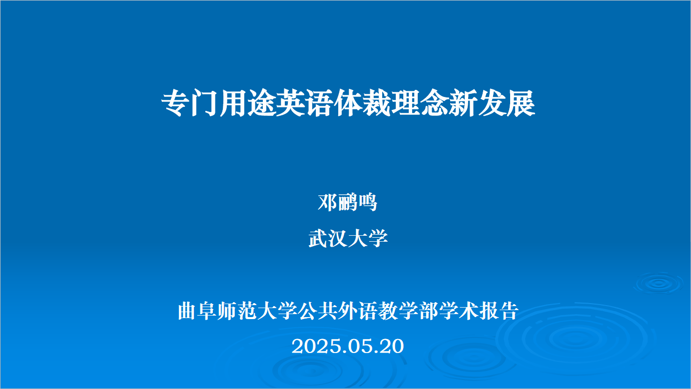 2025年5月20日下午,江南在线平台(中国)官网江南在线平台(中国)官网举办70周年校庆系列学术活动暨博雅讲坛第八场。武汉大学邓鹂鸣教授应邀作题为“专门用途英语体裁理念新发展”的学术报告,江南在线平台(中国)官网全体教师参加活动。