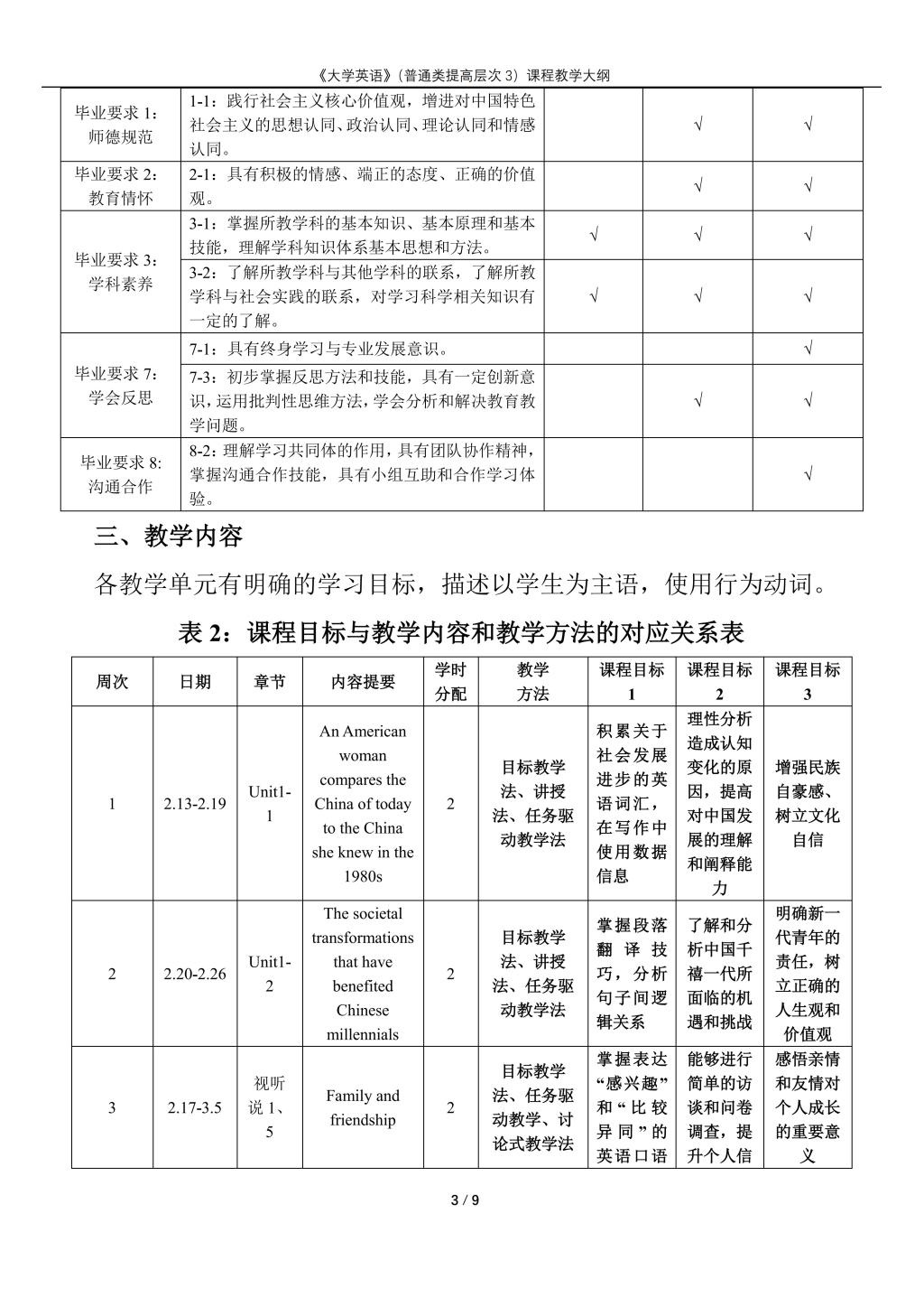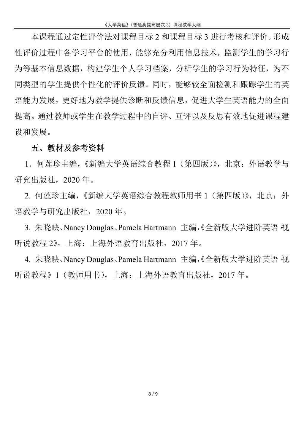 大学英语(普通类提高层次3)课程教学大纲(2022版)