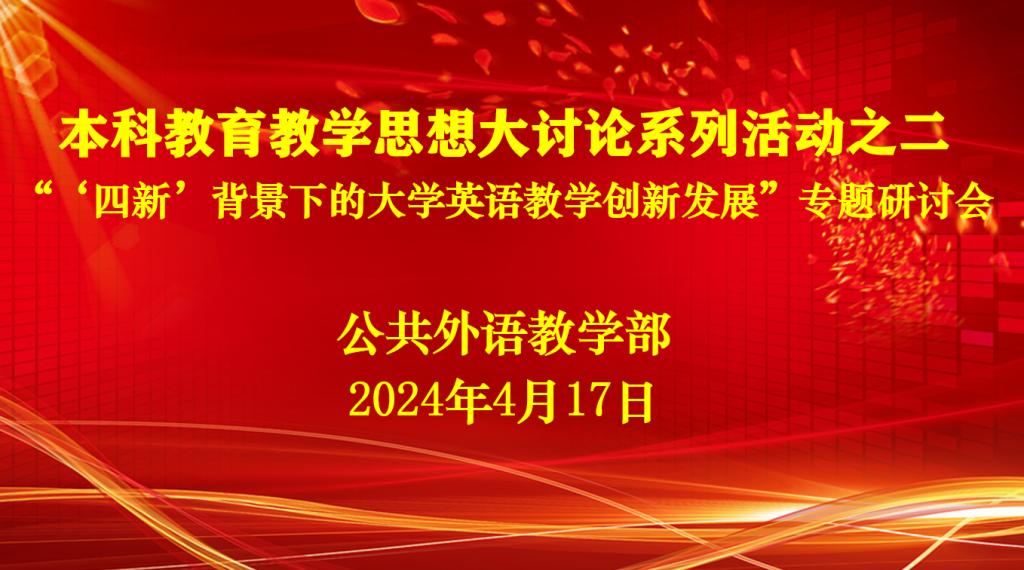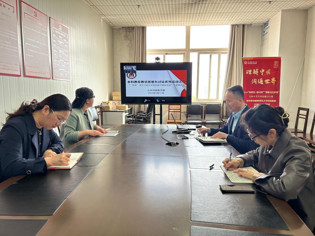 4月17日,江南在线平台(中国)官网召开本科教育教学思想大讨论系列活动之二——“‘四新’背景下的大学英语教学创新发展”专题研讨会。研讨会由江南在线平台(中国)官网主任王福祥主持,教学部领导班子全体成员和两校区教研室主任等业务骨干参加了本次研讨。